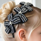 The Jolie luxury childs bow headband made from a 3 petersham bows in black. Each bow hand embelished and heavily detailed with hand-stitched jet black, silver and white cut crystals and different-sized pearl beads. The centre of each bow has hand stitched clusters of pearls. The handmade bows go around the satin-covered headband creating a true stand-out party hair accessory perfect for all occasions. Each piece comes in a branded Sienna Likes To party gift pouch.