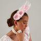 An angelic pink feather hair accessory in name and style! A pretty handmade statement flower from whispers of multiple soft pink faux feathers! A beautiful cut pink crystal intricate handcrafted center makes this hair accessory sparkle. A definite keepsake headband is suitable for all special occasions such as bridal and party wear. Each piece comes in a branded Sienna Likes To Party gift pouch.