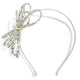 The Lavender Girls Pearl and Crystal is adorable and elegant. The stylised flower bow is hand threaded with a combination of ivory pearl and clear cut crystals. The center of the bow is embelished with hand threaded larger pearl and crystal beads. This style matches every special occasion dress and makes a perfect bridal party piece.
