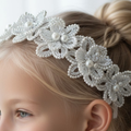 Girls' Ivory Flower Crown – Handcrafted Pearl & Crystal Headband for Special Occasions