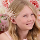 A new addition to Sienna Likes To Party's fabulous headband collection! Pretty handmade flowers made from soft pink pearls with a glittering diamante stone center, handstitched around the whole headband. A beautiful style for flower girls and children's special occasion wear. Comes in a branded Sienna Likes To Party gift pouch.