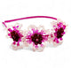 The Belladona Childs headband is entirely hand threaded with large translucent pastel pink crystals of the finest quality to create a flower. In the center of each of the three flowers are three large cut crystal rectangles for supreme sparkle. The flowers are then hand stitched to a pastel pink luxury satin covered headand The prettiest of pastel tones, perfect for flower girls or any special occasion.