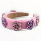 The padded headband is the most coveted trend in hair accessories this season. This headband is covered with sparkling lilac organza. Six large statement diamante flowers of the highest quality are suspended on this princess crown in both pink and lilac. This headband is entirely handmade and is a true dazzling bespoke special occasion piece.