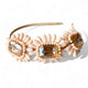 The Katy Childs headband is entirely hand threaded with large round finest quality sunflower lemon yellow translucent cut crystals which are hand stitched to a lemon yellow luxury satin covered headband. The prettiest of lemon yellow, perfect for any special occasion.