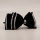 A large statement rectangle diamante jewellery necklace with four apricot-coloured love hears and two clear diamantes' sitting alongside. They are set on luxurious black soft velvet. Gorgeous striped faux feathers adorn the necklace. Mother of pearls form the necklace itself and it has an adjustable clasp. A must pretty girl necklace perfect gift. Comes with a Sienna Likes To Party branded drawstring gift pouch for safekeeping.