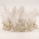 Beautiful shades of lilac and purple. The first layer of this flower has a chiffon flower embroidered with dozens of tiny metallic purple sequins. The second two layers of the flower are heavily embroidered with soft metallic purple thread. The center of the chiffon flower is hand stitched with a large cut crystal bead giving each flower super sparkle. Each flower in this stunning flower crown is surrounded by crystal leaves and rose buds which are hand threaded with dozens of crystal and pearl beads and embellished with feathers. A perfect special occasion garland to be treasured.