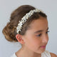 This is a beautifully sophisticated, highly embellished Sienna Likes to Party Girls Headband. It has been entirely handmade with varying sizes of clear blush cut crystal and pearl beads of varying sizes. The beads are hand threaded to create a splay of flowers. This style makes the perfect bridal or special occasion accessory. This piece comes in its own Sienna Likes to Party branded drawstring chiffon pouch for safe keeping.
