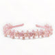 A classic Sienna Likes To Party hair accessory for a girl's hair clip. This is a large hair bow style hand made from pale pink Petersham. The designer kids' hair clip is then highly embellished with lines of hand-stitched beads ranging from tiny and delicate to larger and sparkly. All of the beads are either pearl or crystal and tonal pinks. The cutest of hair accessories for kids.