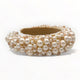 The must-have trend of wide statement headbands continues with this stunning design. This headband is all in detail - rows of larger cut milky white crystals all handstitched.
