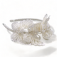 Two large beautiful multi-layered white lace embroidered butterflies clustered together on an alligator hair clip. Each butterfly is hand-stitched with clear and pale pink crystal beads of various shapes to create a distinctive embellished effect! A fabulous style for little flower girls and princesses of all ages.